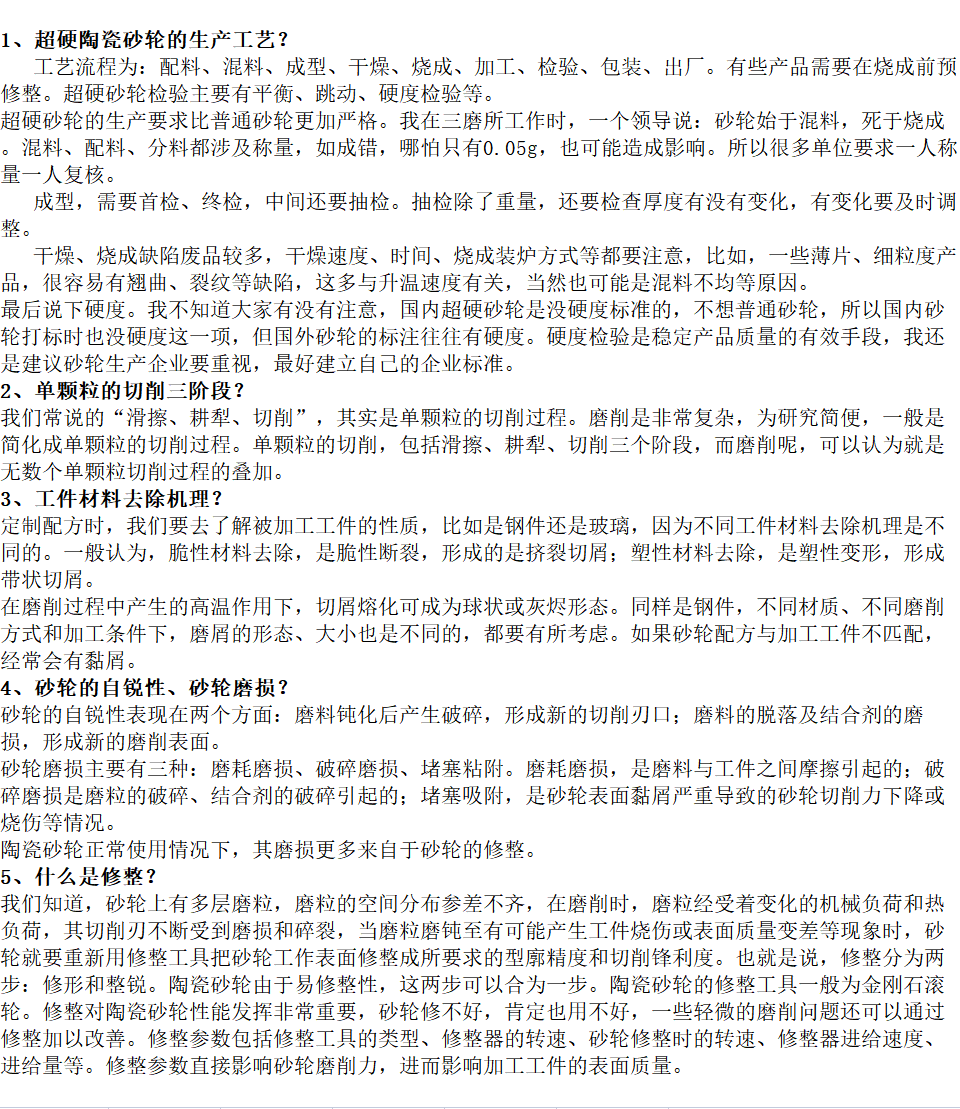 介紹一下我們超硬陶瓷砂輪的生產(chǎn)工藝以修整
